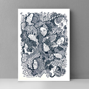 Doodle faces – Abstract faces done by pen. original painting sold, Prints available